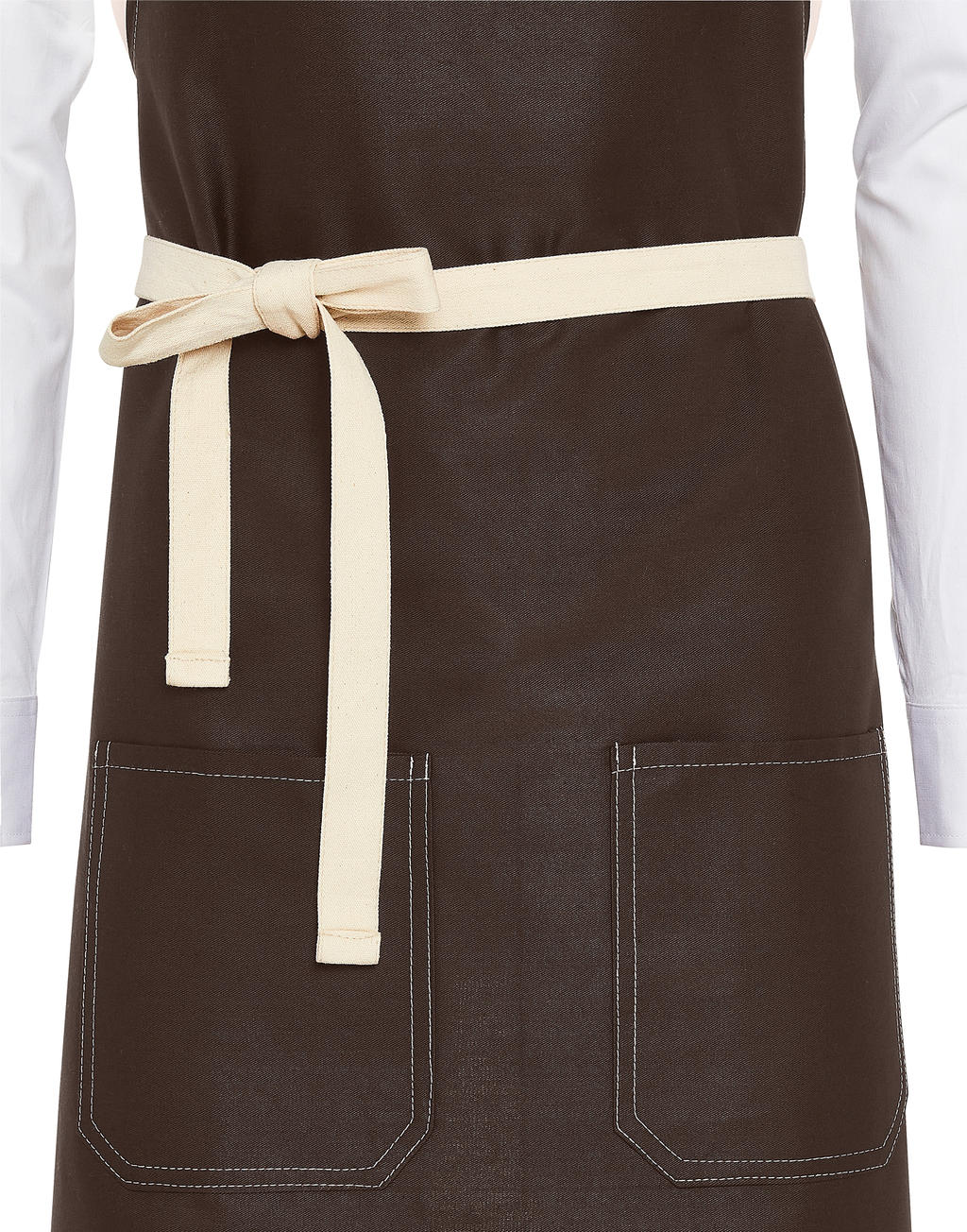 ·Modny fartuch z kontrastowymi przeszyciami i wiązaniem